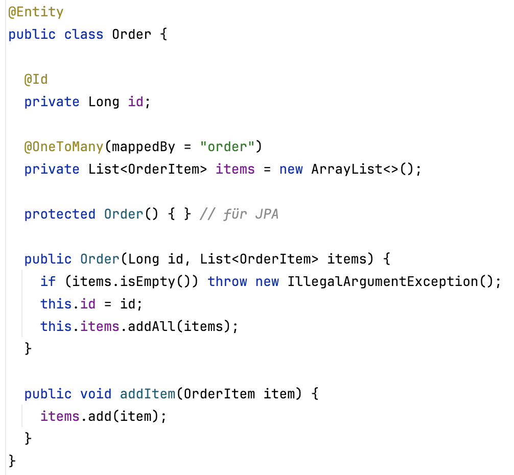 - Keine JPA-Annotationen in Domain-Klassen