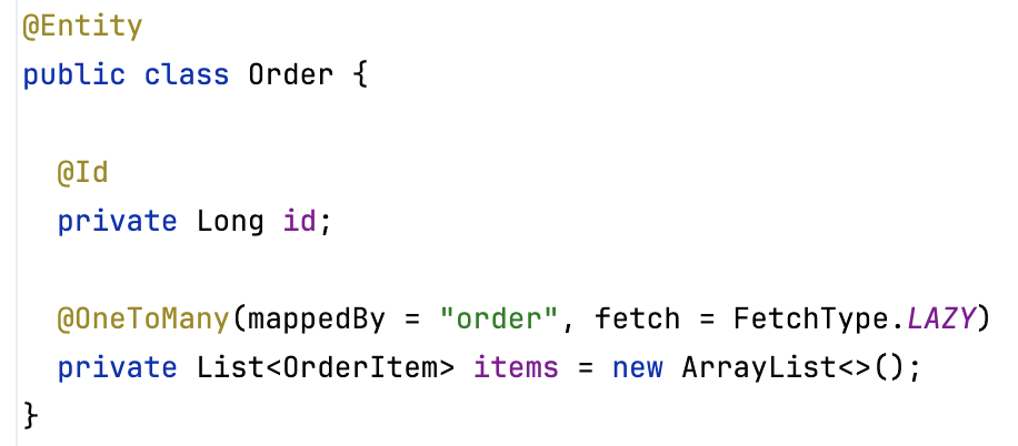 Im Test ist items möglicherweise leer oder nicht initialisiert, während zur Laufzeit ein Proxy geladen wird. Ähnliches gilt für @PostLoad oder @PrePersist.