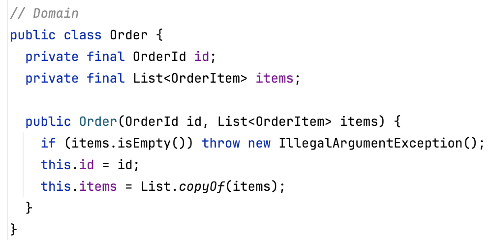 Nach der „reinen“ DDD-Lehre sollte der Domänenkern vollständig frei von Infrastruktur sein. Das bedeutet konkret: